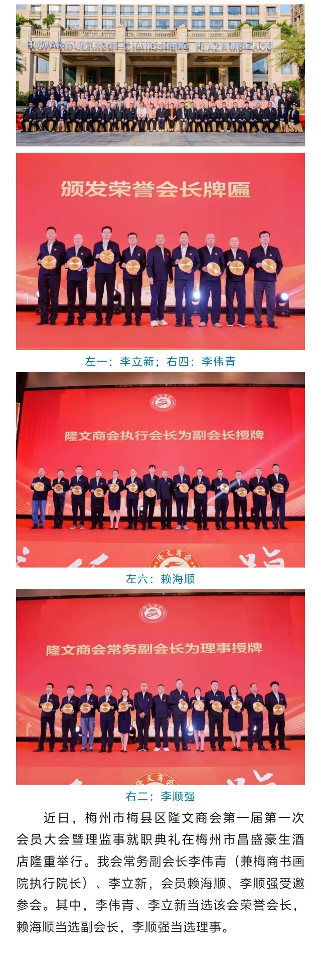 热烈祝贺我会常务副会长李伟青、李立新当选梅州市梅县区隆文商会荣誉会长