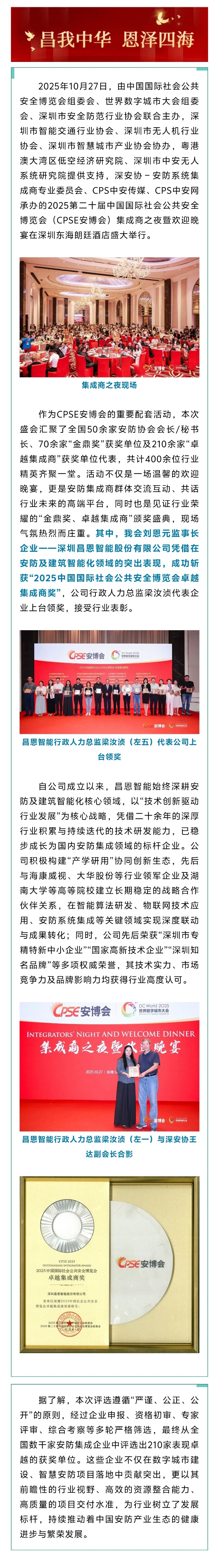 昌恩智能荣膺“2025中国国际社会公共安全博览会卓越集成商奖”