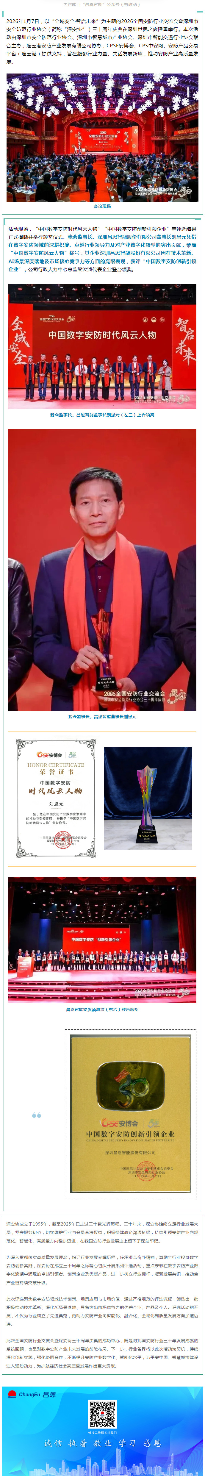 热烈祝贺我会刘恩元监事长荣膺“中国数字安防时代风云人物” 其企业昌恩智能获评“中国数字安防创新引领企业”