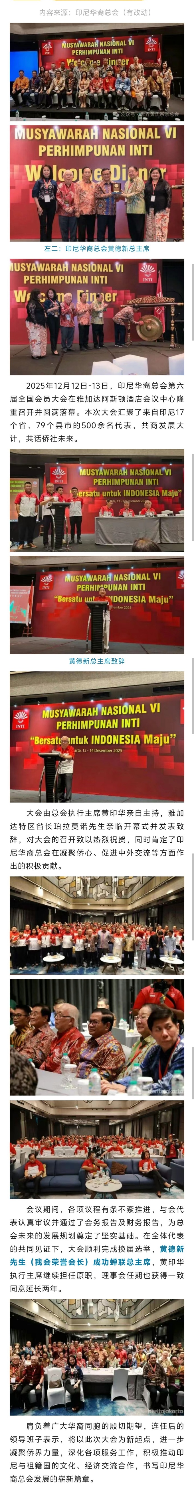 热烈祝贺深梅商黄德新荣誉会长蝉联第六届印尼华裔总会总主席